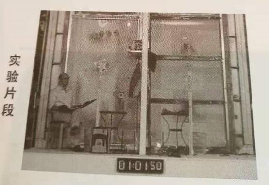 试验工具:木块、尼龙窗帘、外套、书籍、书包、木椅、玩具、塑料风扇、收音机、记事本、花瓶、垃圾桶、花等,置于防火玻璃背面,两者设置只有玻璃不同,其余配置完全相同。