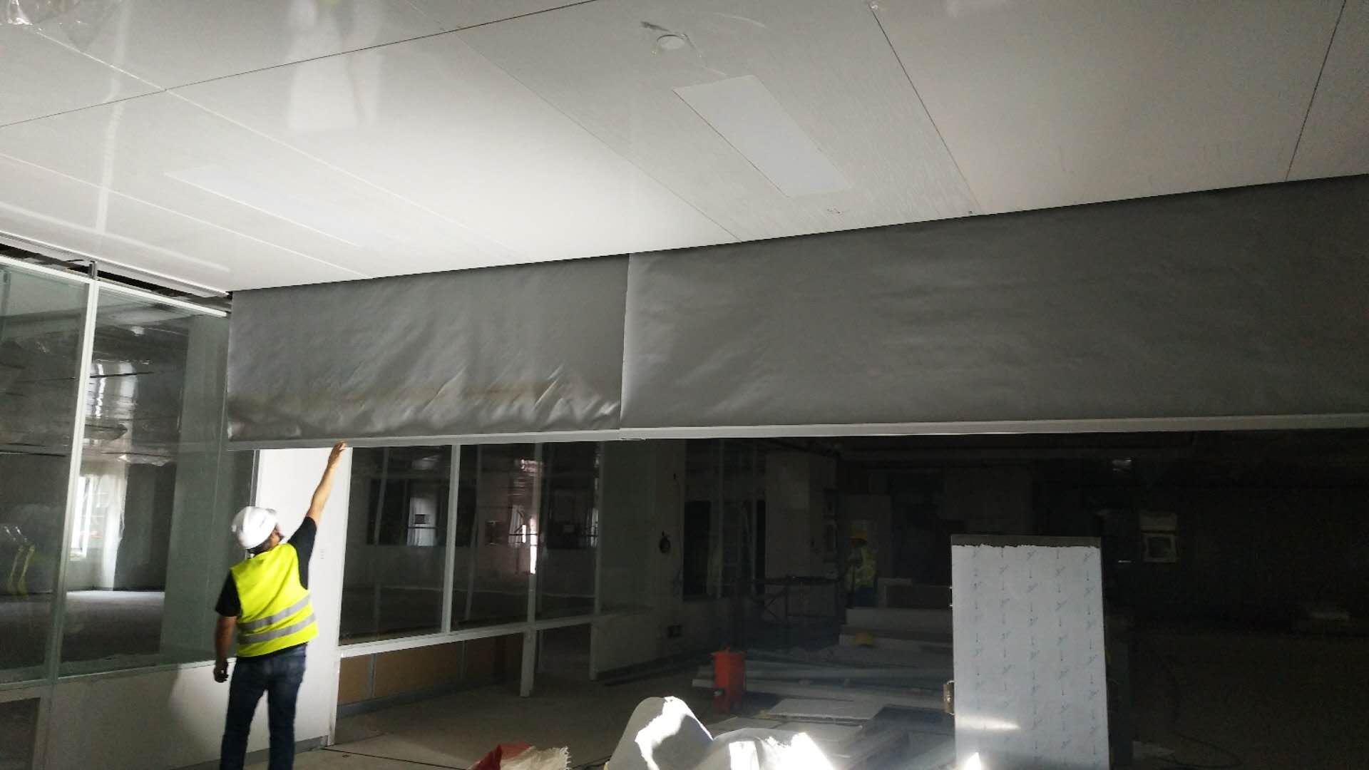 澳科利耳成都新建项目工厂分区多样,我司勘查了工程施工情况后,建议采购方在吊顶下垂高度多的地方使用柔性固定挡烟垂壁,既可满足消防规范,还可降低成本。在吊顶下垂高度少地方使用电动挡烟垂壁,