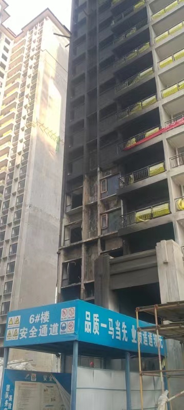 近日,武胜县某在建楼盘突发火灾,现场浓烟滚滚,大火蔓延12层以上,建筑外表及内部均被大火烧至一片漆黑,窗户所使用钢化玻璃遇热遇火立刻爆裂,而应用于避难间的我司供应的防火玻璃、防火窗在消防救援扑灭大火后,无破裂,无变形现象。