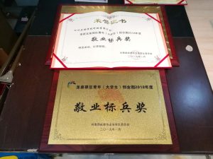 2018年10月,荣获2018年龙泉驿十大“青创先锋”荣誉称号